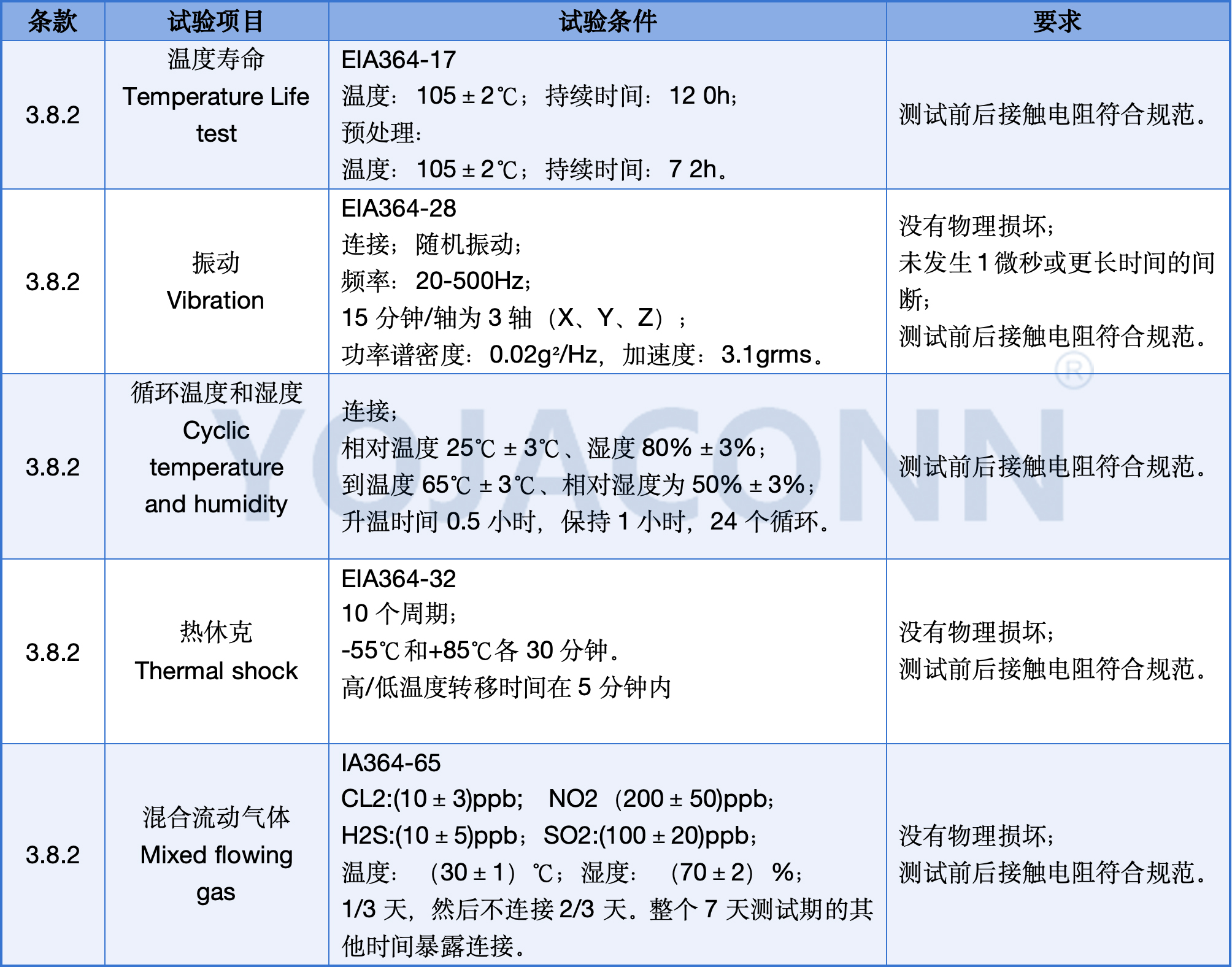根据c型连接器的分布式电气、机械和环境合规性要求,请参考EIA364.1000.01标准中的分组和测试方法来实现测试。