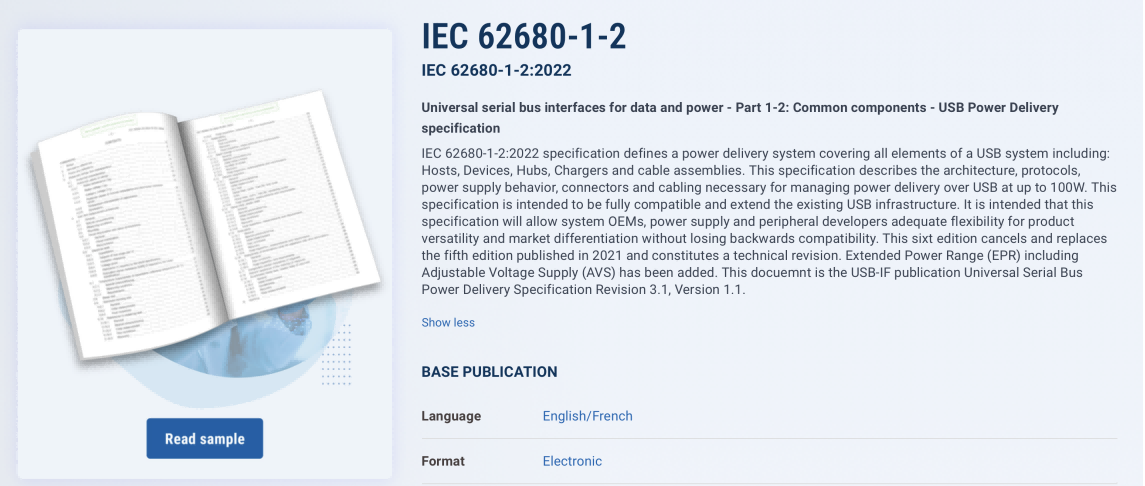 IEC 62680-1-2:2022规范定义了一个涵盖USB系统所有元件的电力输送系统,包括:主机、设备、集线器、充电器和电缆组件。