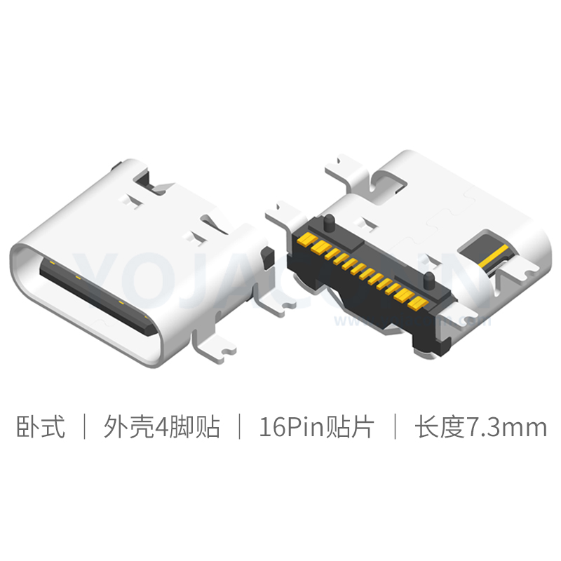 TYPE-C母座 16P卧式四脚贴CH1.63 长7.3Z3带夹片