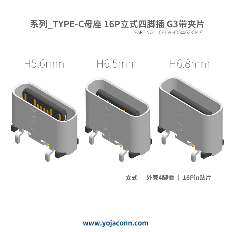 TYPE-C母座 16P立式四脚插 高5.6G3带夹片