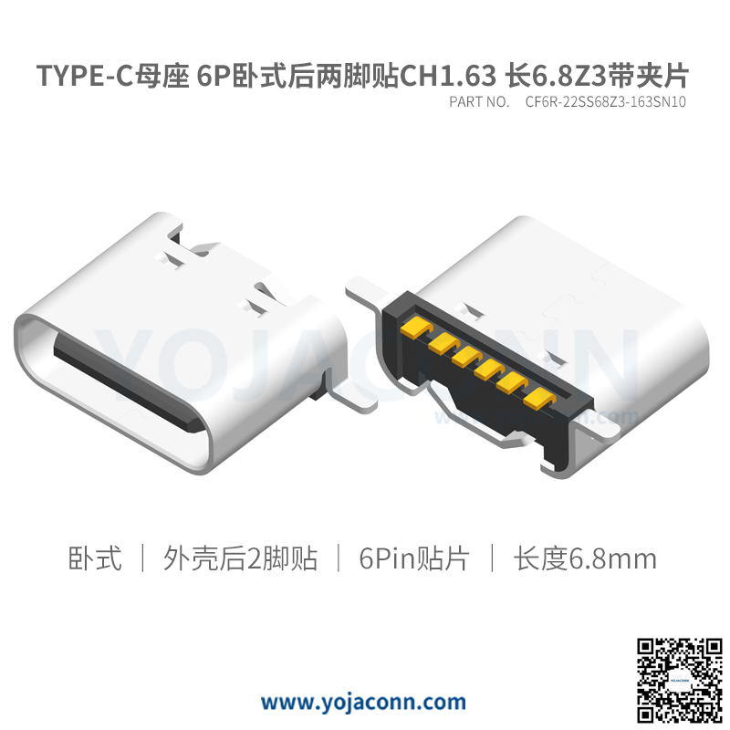 TYPE-C母座 6P卧式四脚贴CH1.63 长6.8Z3带夹片