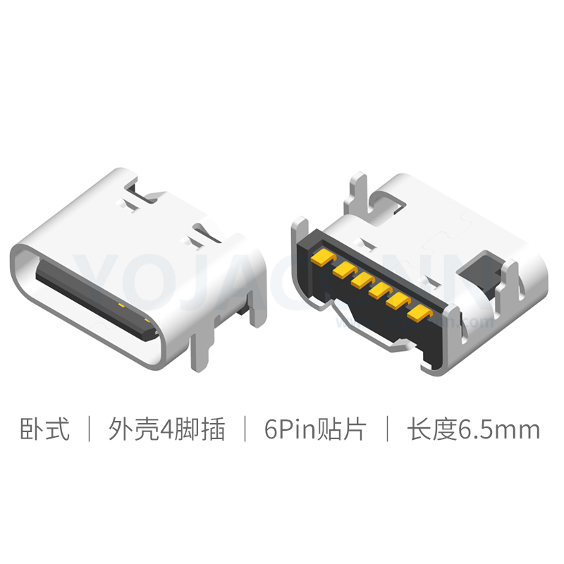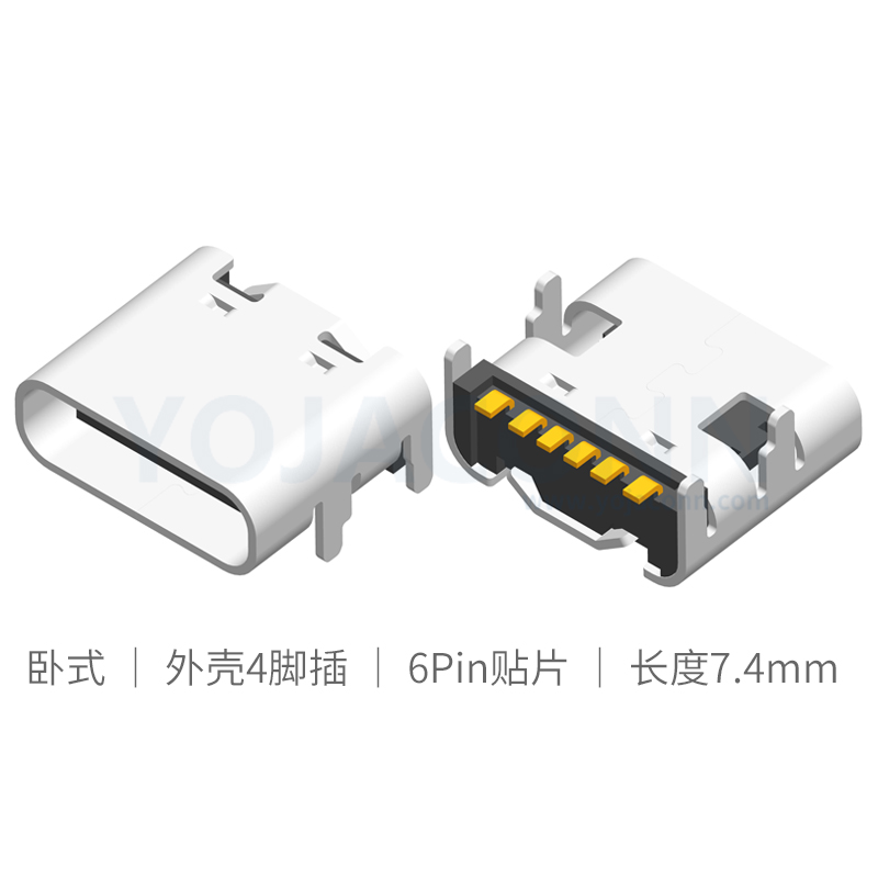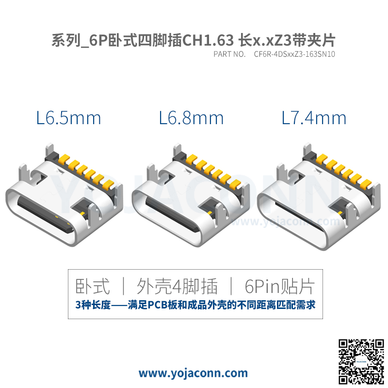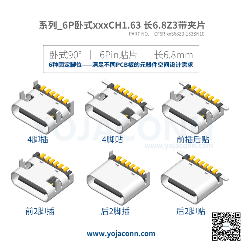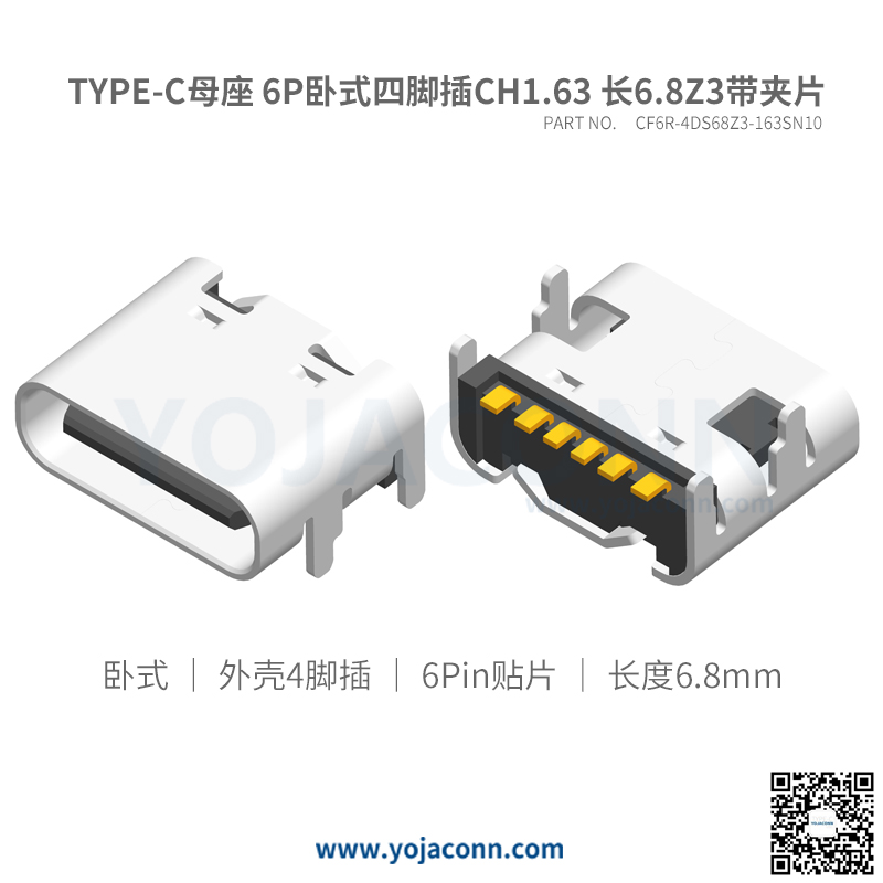 TYPE-C母座 6P卧式四脚插CH1.63 长6.8Z3带夹片